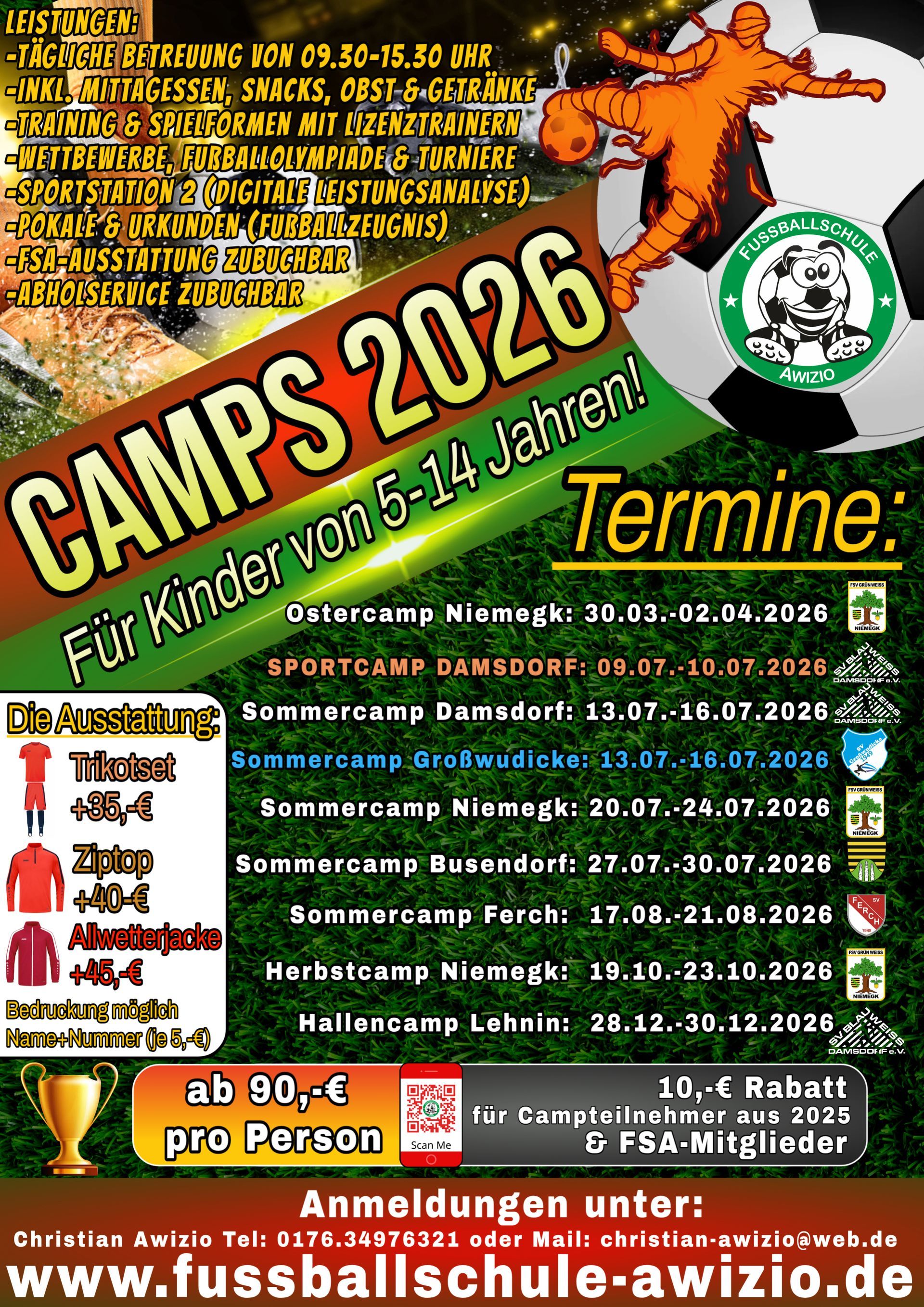 Jedes Jahr finden unsere Fussballcamps für junge Fußballkids von 5 bis 14 Jahren statt. Die Teilnehmeranzahl ist begrenzt, also melden Sie Ihr Kind noch heute an.